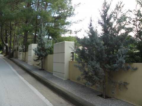 Πρόκειται για μία διώροφη με υπόγειο κατοικία 240,00 τ.μ. σε μία κατάφυτη περιοχή στο «Κανδuλί» του Δήμου Ιαλυσού. Συνορεύει με σημαντικό οδικό άξονα που συνδέει την πόλη της Ρόδου με την δυτική πλευρά του νησιού περνώντας μέσα από ένα μικρό δάσος.Η κατοικία αναπτύσσεται γραμμικά , παράλληλα προς αυτήν την οδό, από την πλευρά της οδού η βορινή όψη είναι έτοιμη να υποδεχθεί τους ανθρώπους αλλά όχι να τους φιλοξενήσει στους υπαίθριους χώρους της. Είναι με άλλα λόγια, ο τοίχος που αφενός επιτρέπει στο φως να διαπερνά και να φωτίζει και αφετέρου να δημιουργεί το τεχνητό φράγμα προς την κυκλοφορία του δρόμου.Από την άλλη πλευρά η νότια όψη ανοίγεται διάπλατα προς το φυσικό περιβάλλον, όπου με την κατάλληλη διαμόρφωση φιλοξενεί στους υπαίθριους χώρους που αναπτύσσονται σ’ όλο το μήκος αυτής, τους καλεσμένους αλλά και τους ενοίκους.Η έντονη γραμμικότητα της κατοικίας, (αναλογία πλάτους – μήκους), σε συνδυασμό με τα μεγάλα αντικριστά ανοίγματα, (από την πλευρά του δρόμου η μεγάλη τζαμαρία της σκάλας, και από την πλευρά του κήπου η μεγάλη τζαμαρία του καθιστικού), καθιστούν την κατοικία διαμπερή με ενδιάμεσες θεάσεις εκατέρωθεν των πλευρών. Στο χώρο του υπογείου αναπτύσσονται ένας μικρός ξενώνας, ένας χώρος παιχνιδιού και βοηθητικοί χώροι και το γκαράζ 2 αυτοκινήτων. Στο ισόγειο αναπτύσσονται οι χώροι διημέρευσης, και στον όροφο οι χώροι διανυκτέρευσης.Αξίζει να σημειωθεί ότι τα υπνοδωμάτια βρίσκονται αντιδιαμετρικά αντίθετα στα δύο άκρα του επιμήκους σχήματος της κάτοψης και συνδέονται με έναν διάδρομο – εξώστη με θέα προς το καθιστικό του ισογείου.Ο φέρων οργανισμός του κτιρίου είναι εμφανής στο κτίριο, ενώ στις κεκλιμένες στέγες επιλέχθηκε να καλυφθούν από μπετονένιες μικρού ύψους βαθμίδες και όχι από κεραμίδια. Στις πυραμοειδείς στεγάσεις αφαιρείται η κορύφωση της πυραμίδας και τοποθετείται γυαλί ώστε να διεισδύει το φυσικό φως από ψηλά. Το σύνολο των επικαλύψεων της στέγης με τις εναλλαγές των κλίσεων δημιουργούν ένα τεχνητό ανάγλυφο, ανάλογο με το φυσικό.Το παιχνίδι με τα πλήρη και τα κενά, οι εναλλαγές του ύψους της κατοικίας καθ ’όλο το μήκος της, οι αρχιτεκτονικές προεξοχές, το χρώμα και οι εναλλαγές της στέγης, στόχο έχουν να εντάξουν και ταυτόχρονα να αναδείξουν την κατοικία μέσα στο όμορφο φυσικό περιβάλλον της.