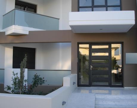 Πρόθεση του ιδιοκτήτη ήταν να κατασκευάσει στο οικόπεδο αυτό τριώροφη οικοδομή με υπόγειο με σκοπό την εκμετάλλευσή της.Έτσι δημιουργήσαμε όροφο διαμερίσματα των 120,00 τ.μ. που θα φιλοξενήσουν οικογένειες μεσαίου εισοδήματος.Ο κάθε δρόμος σε συνδυασμό με τον προσανατολισμό και την θέα είχε την δική του βαρύτητα και αξία στην σύνθεση και οι όψεις πάνω σ΄ αυτούς αντιμετωπίστηκαν κατά περίπτωση.Συγκεκριμένα στον περιφερειακό οδικό άξονα αναπτύχθηκαν μεγάλοι συνεχείς εξώστες λόγω θέας και αρχιτεκτονικές προεξοχές δίνοντας αφενός έντονη γραμμική συνέχεια του ιστού τής πόλης και αφετέρου φωτοσκιάσεις δημιουργώντας έντονη κινητικότητα.Η όψη αυτή χαρακτηρίζεται από λευκές οριζόντιες ζώνες που αποτελούν τα συμπαγή στηθαία των μπαλκονιών και επεκτείνονται πέρα από τη μάζα του κτιρίου ορίζοντας με σαφήνεια τα διαμερίσματα αλλά και μεταθέτοντας το αστικό όριό τους έξω από την επιδερμίδα τους.Στην υπό διάνοιξη δημοτική οδό ένα ευθύ πέτασμα από κολώνες και δοκούς ορίζει και οριοθετεί με σαφήνεια τον ιδιωτικό από τον κοινόχρηστο χώρο.Η είσοδος του συγκροτήματος, (κλιμακοστάσιο), τοποθετήθηκε πάνω σ΄ αυτό το αυστηρά γεωμετρικό πέτασμα που αφενός οριοθετεί τα ιδιωτικά όρια και αφετέρου είναι η πλάτη πάνω στην οποία συνθέτουμε το συγκρότημα.Αξίζει να σημειωθεί ότι μέσα από τα κενά του πετάσματος ξεπροβάλουν υποστηριζόμενοι εξώστες δείχνοντας την πρόθεσή μας για την σύναψη ενός διαλόγου μεταξύ ιδιωτικού και δημόσιου χώρου.Γενικότερα οι όψεις αποτελούν το φλοιό που άλλοτε κρύβει και άλλοτε αποκαλύπτει την εσωτερική λειτουργία.Ο τρόπος που εναλλάσσονται τα πλήρη με τα κενά, φιλτράρουν κατά περίπτωση τις οπτικές φυγές, αποτελώντας έτσι το καθημερινό σκηνικό διαβίωσης μέσα στην πόλη.Μέσα σ’ αυτά τα πλαίσια, ακολουθώντας ταυτόχρονα τις επιταγές και περιορισμούς της μορφολογίας του οικοπέδου και περιοχής , του κόστους κατασκευής , τις προθέσεις του ιδιοκτήτη και τον Γ.Ο.Κ. διαμορφώθηκαν οι συνθετικές μας αρχές.